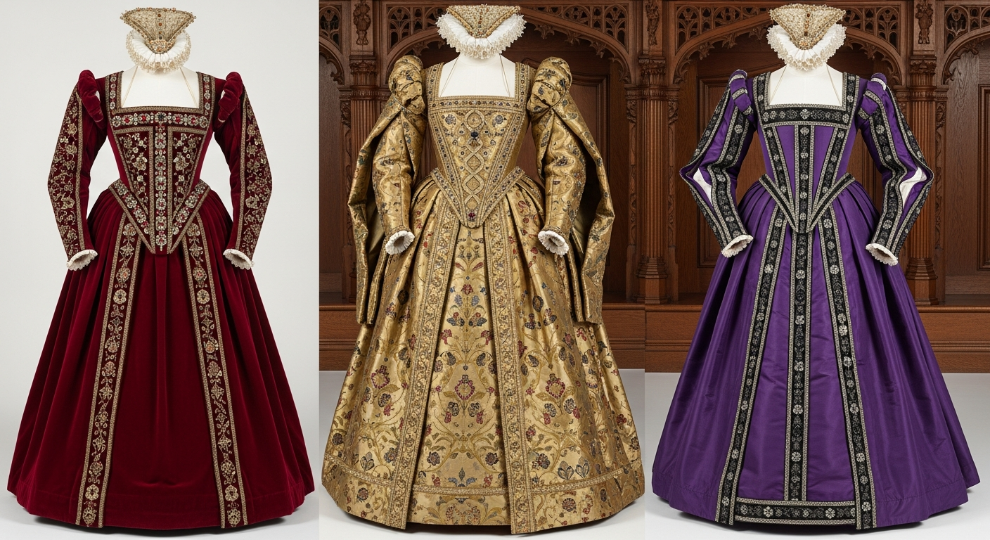 Each garment in Elizabeth’s collection served specific ceremonial, diplomatic, or seasonal purposes. Court records indicate that the queen often changed her outfit multiple times during important state occasions, using different ensembles to signal various political messages to the assembled courtiers and foreign dignitaries. The inventory reveals gowns crafted from the finest materials available: cloth of gold, cloth of silver, rich velvets from Italy, and silks imported from across Europe and beyond.